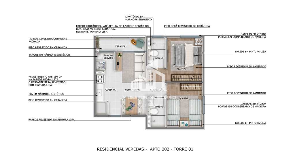 Apartamento com 2 dormitórios, sala e cozinha integradas, varanda e lavanderia, e...